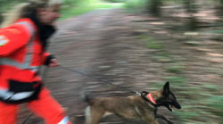 In der Trümmersuche läuft sie mit mehr Bedacht über die Trümmer und konzentriert sich aufs Wesentliche. Die Anzeige einer Person erfolgt hier durch Verbellen.