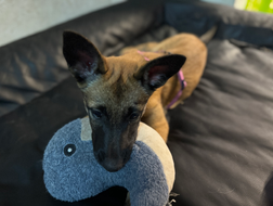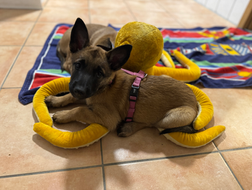 Infiniti ist eine agile und lustige Hündin, die auf jeden Fall Spaß in allen Arbeitsbereichen macht. Sie hat das Verbellen der Futterschüssel an zwei Tagen erlernt. Die Stoffkonditionierung in der Spürhundearbeit konnte sie sofort umsetzen. Übungen aus der Unterordnung setzt sie mit vollem Eifer um und fordert die Übungen ein. Sie hat eine sehr gute Nasenveranlagung, hat Spaß an der Unterordnung und Gerätearbeit und das Beutezergeln. Sie hat eine Vorliebe für meine Schuhe und liebt den Körperkontakt auf dem Schoss oder mit auf dem Kopfkissen liegend. Infiniti ist im Haushalt mit vier weiteren Malis groß geworden und kennt keine Zwingerhaltung!