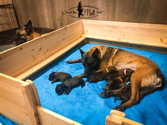 Unser ca. 20 m² großes Welpenzimmer inkl. Fußbodenheizung befindet sich im hinteren Bereich unseres Hauses. Das Zimmer wurde extra bei Bezug eigens dafür umgebaut und auf die Bedürfnisse für die Welpen eingerichtet. Die Welpen erhalten durch eine separate Tür direkten Zugang in den Garten und über eine weitere Tür Anschluss zu den anderen Rudelmitgliedern im Haus. Über diesen Zugang können die Welpen über die Terrasse ebenfalls hinaus ins Freie. Das Zimmer wie auch der Garten sind Kameraüberwacht. Die Wurfkiste in der Maße 1,40 m x 1,40 m bietet genügend Platz, für einen Erwachsenen samt drei großen Hunden + Welpen oder drei Erwachsenen und den Welpen in der Wurfbox die gemeinsame Zeit zu genießen. Da die Hündin, wie auch die Welpen in der Anfangszeit sich lange in der Box aufhalten, ist diese mit einer orthopädischen Matte ausgestattet, um ein komfortables Liegen zu ermöglichen. Ein Fernseher an der Wand dient dazu Geräusche über YouTube abzuspielen und die Welpen an weitere Umweltreize zu gewöhnen.